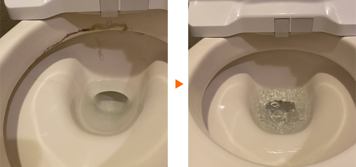 西宮市甲子園口のお客様 トイレ便器の尿石・黒ズミの除去例